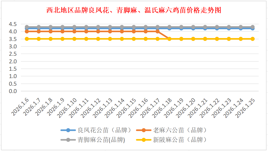 西北地区麻鸡苗价格走势图(来源:鸡病专业网)