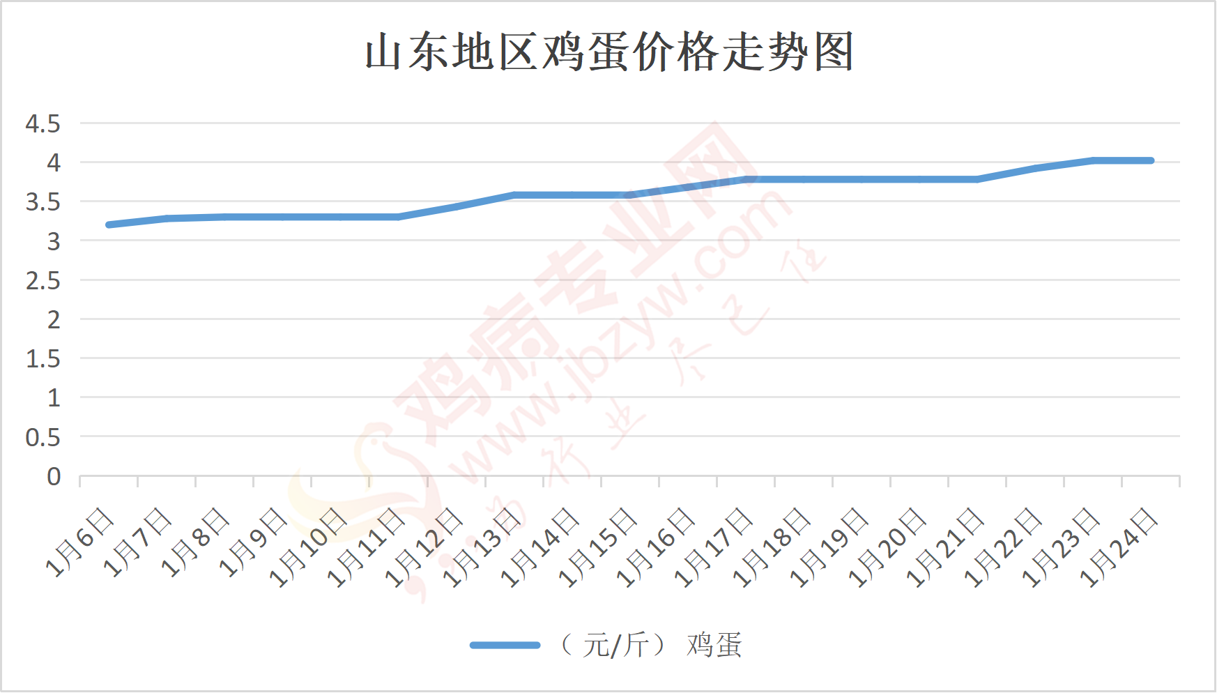 鸡病专业网消息:1月24日,山东地区莱阳鸡蛋4元/斤,稳;青岛鸡蛋4元/斤,稳;诸城鸡蛋4.05元/斤,稳;安丘鸡蛋4元/斤,稳;昌乐鸡蛋4元/斤,稳;寿光鸡蛋4元/斤,稳;昌邑鸡蛋4元/斤,稳;高密鸡蛋4.05元/斤,稳;青州鸡蛋4元/斤,稳;临朐鸡蛋4元/斤,稳;莱州鸡蛋4元/斤,稳;威海鸡蛋4元/斤,稳;临沭鸡蛋4元/斤,稳;沂水鸡蛋4元/斤,稳;沂南鸡蛋4元/斤,稳;莒南鸡蛋4元/斤,稳;兰陵县鸡蛋4元/斤,稳;日照鸡蛋4元/斤,稳;莒县鸡蛋4元/斤,稳;日照辛萁商贸鸡蛋4元/斤,稳;泗水鸡蛋价格117元/30斤,稳;济宁、汶上鸡蛋价格117元/30斤,稳;梁山、东平红蛋价格117元/30斤,稳;枣庄滕州地区鸡蛋混码主流到户118元/30斤,稳;泰安地区新泰鸡蛋价格117元/30斤,稳;菏泽地区曹县主流到户117元/30斤,稳;成武鸡蛋价格117元/30斤,稳;单县到户117元/30斤,稳;聊城莘县117元/30斤,稳;莱芜鸡蛋176元/45斤,稳;济南鸡蛋176元/45斤,稳;德州鸡蛋156元/40斤,稳;滨州鸡蛋156元/40斤,稳。
