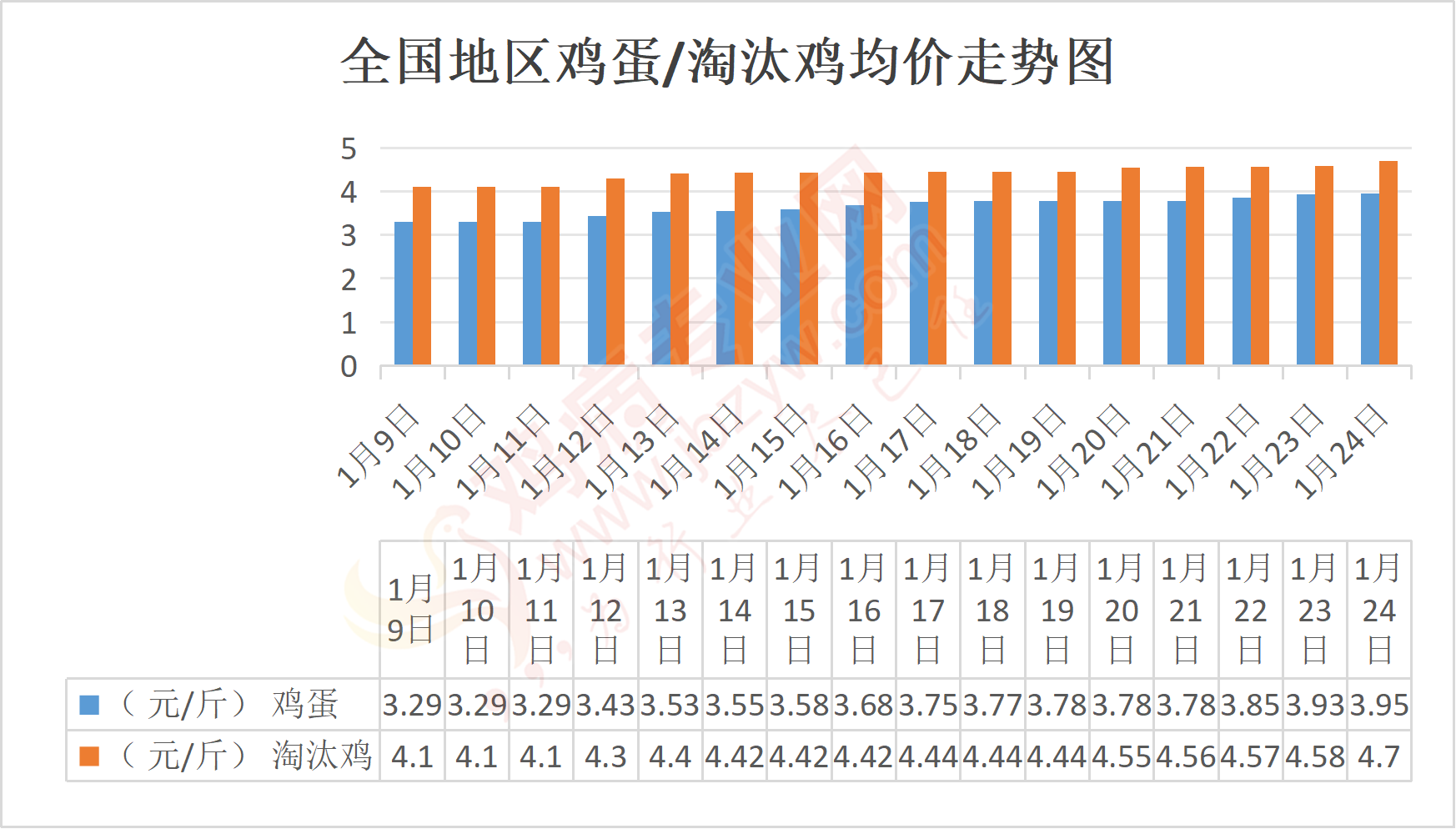 河南地区:南阳鸡蛋3.9-3.95元/斤,与昨日相比持平,淘汰鸡4.6-5.2元/斤;