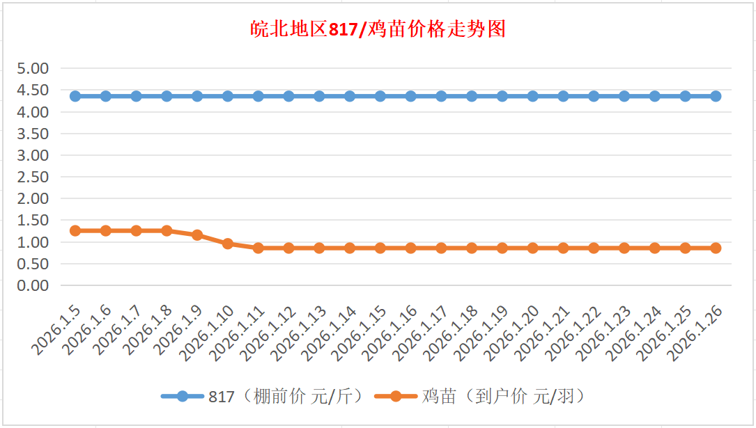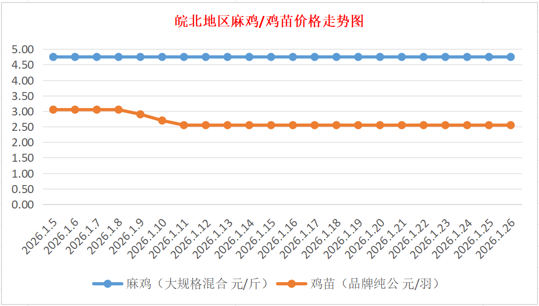 鸡病专业网独家信息:2026年1月26日皖北地区817-麻鸡行情最新走势