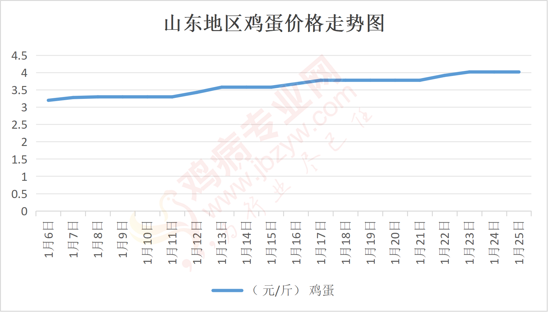 鸡病专业网消息:1月25日,山东地区莱阳鸡蛋4元/斤,稳;青岛鸡蛋4元/斤,稳;诸城鸡蛋4.05元/斤,稳;安丘鸡蛋4元/斤,稳;昌乐鸡蛋4元/斤,稳;寿光鸡蛋4元/斤,稳;昌邑鸡蛋4元/斤,稳;高密鸡蛋4.05元/斤,稳;青州鸡蛋4元/斤,稳;临朐鸡蛋4元/斤,稳;莱州鸡蛋4元/斤,稳;威海鸡蛋4元/斤,稳;临沭鸡蛋4元/斤,稳;沂水鸡蛋4元/斤,稳;沂南鸡蛋4元/斤,稳;莒南鸡蛋4元/斤,稳;兰陵县鸡蛋4元/斤,稳;日照鸡蛋4元/斤,稳;莒县鸡蛋4元/斤,稳;日照辛萁商贸鸡蛋4元/斤,稳;泗水鸡蛋价格117元/30斤,稳;济宁、汶上鸡蛋价格117元/30斤,稳;梁山、东平红蛋价格117元/30斤,稳;枣庄滕州地区鸡蛋混码主流到户118元/30斤,稳;泰安地区新泰鸡蛋价格117元/30斤,稳;菏泽地区曹县主流到户117元/30斤,稳;成武鸡蛋价格117元/30斤,稳;单县到户117元/30斤,稳;聊城莘县117元/30斤,稳;莱芜鸡蛋176元/45斤,稳;济南鸡蛋176元/45斤,稳;德州鸡蛋156元/40斤,稳;滨州鸡蛋156元/40斤,稳。