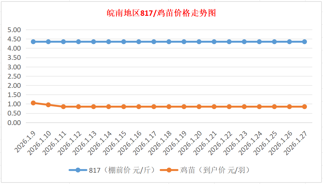 鸡病专业网独家信息:2026年1月27日皖南地区817-麻鸡行情最新走势