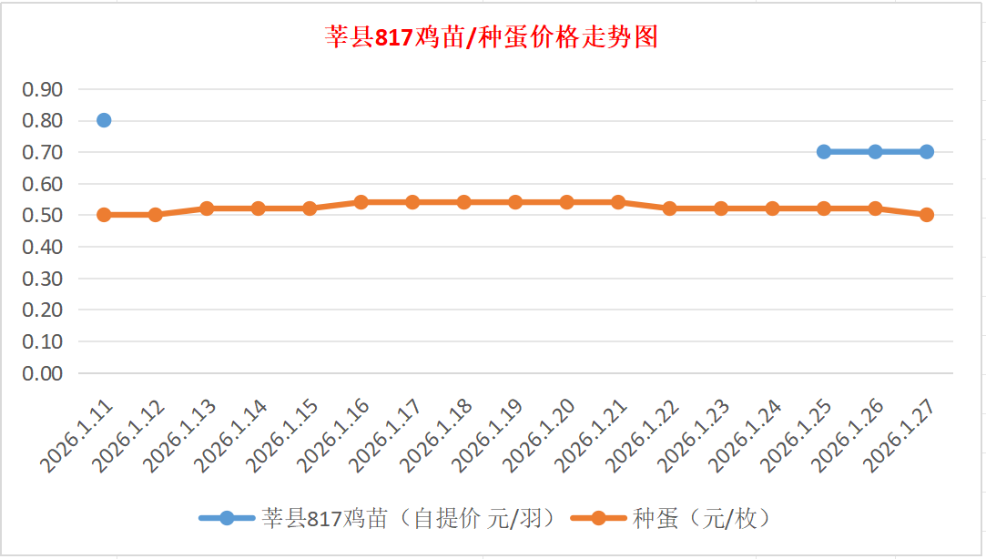 817鸡苗(混合):报价自提0.70元/羽。(稳)