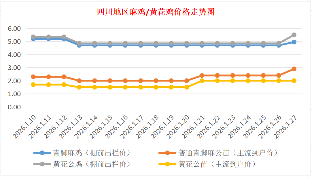 四川地区麻鸡/黄花公价格走势图(来源:鸡病专业网)