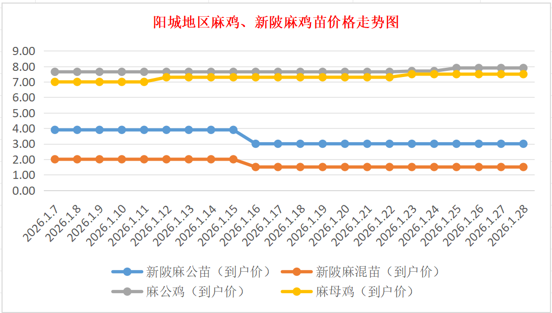阳城地区麻鸡、新陂麻鸡苗价格走势图(来源:鸡病专业网)