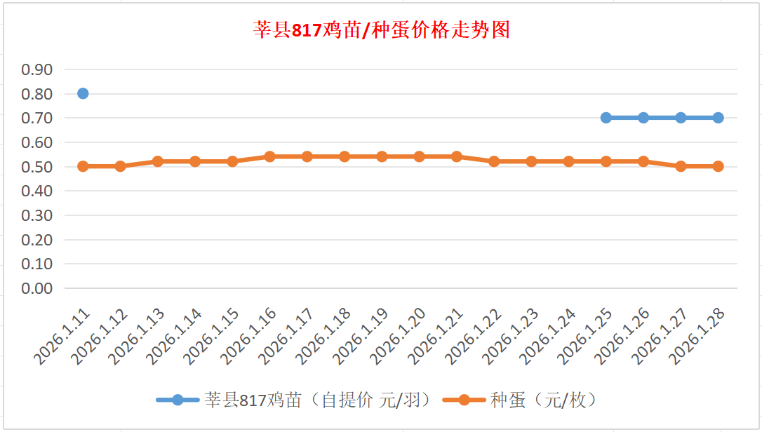817鸡苗(混合):报价自提0.70元/羽。(稳)