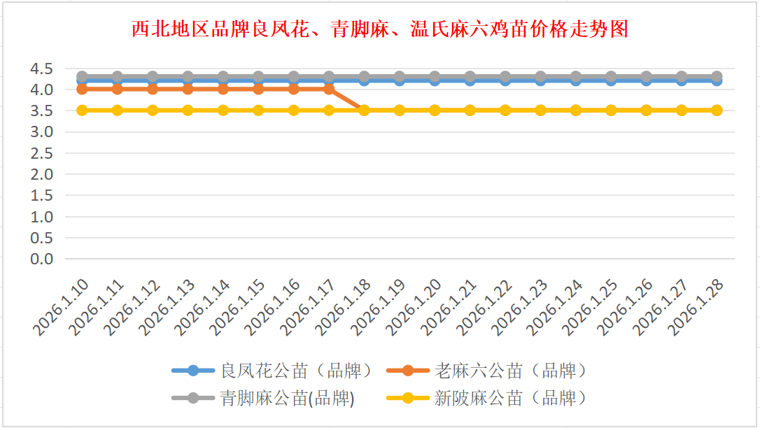 品牌新陂麻:价格稳定,到户价公苗4.50元/羽,稳。