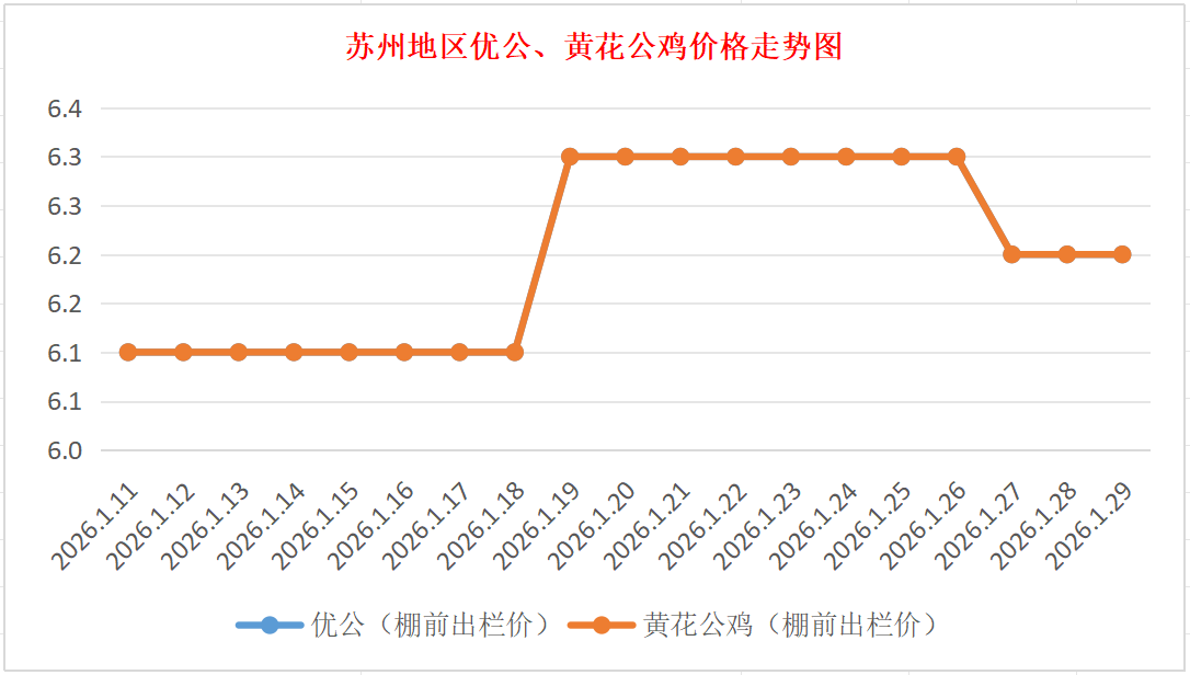 苏州地区优公、黄花公鸡价格走势图(来源:鸡病专业网)