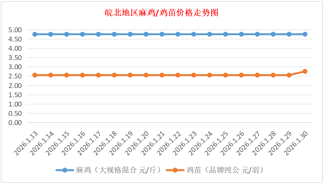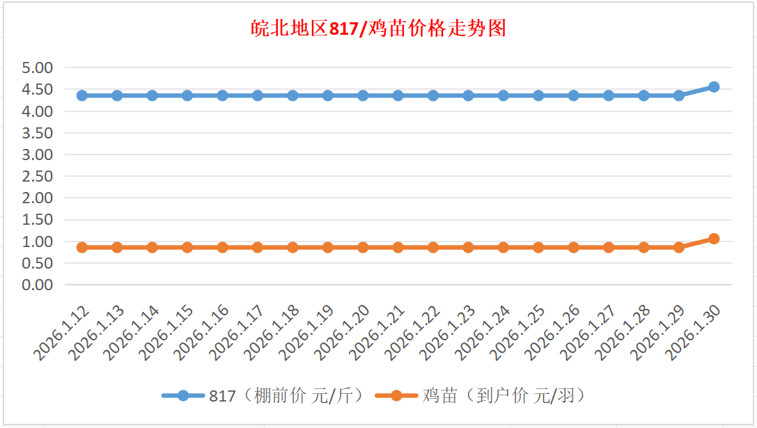 鸡病专业网独家信息:2026年1月30日皖北地区817-麻鸡行情最新走势