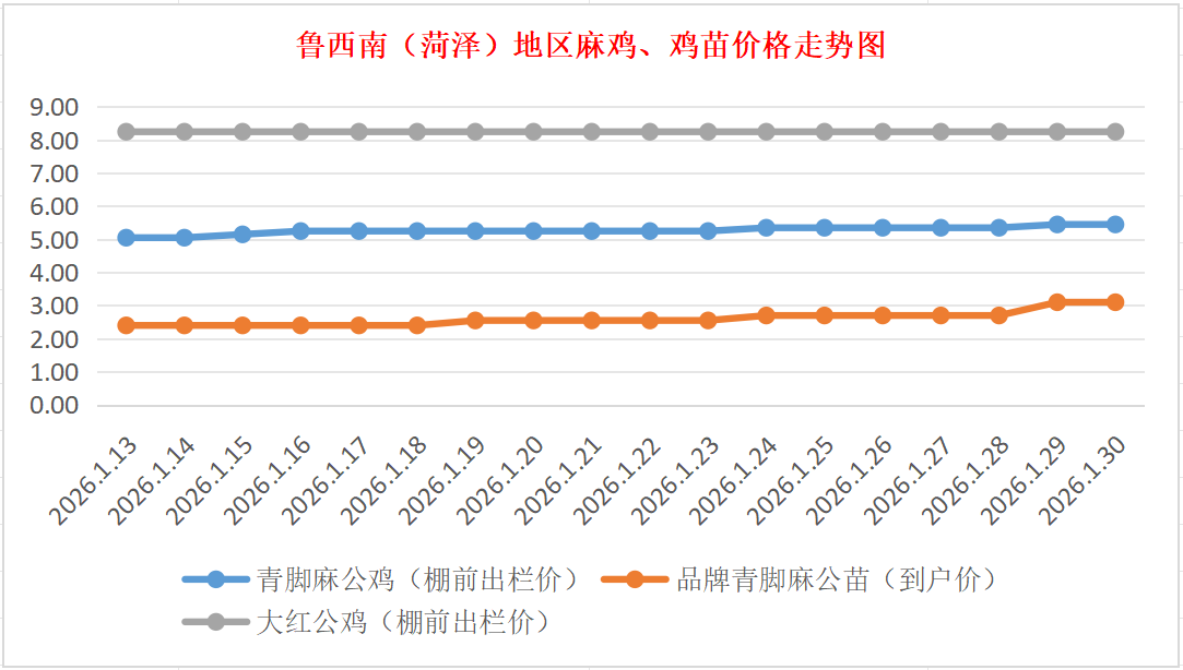 菏泽地区麻鸡、鸡苗价格走势图(来源:鸡病专业网)