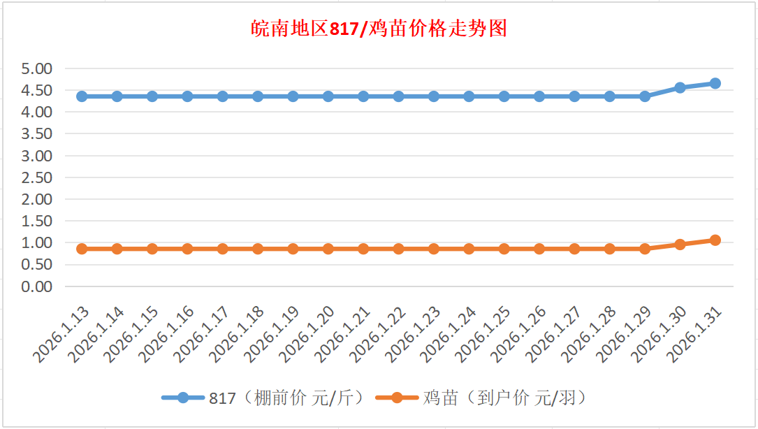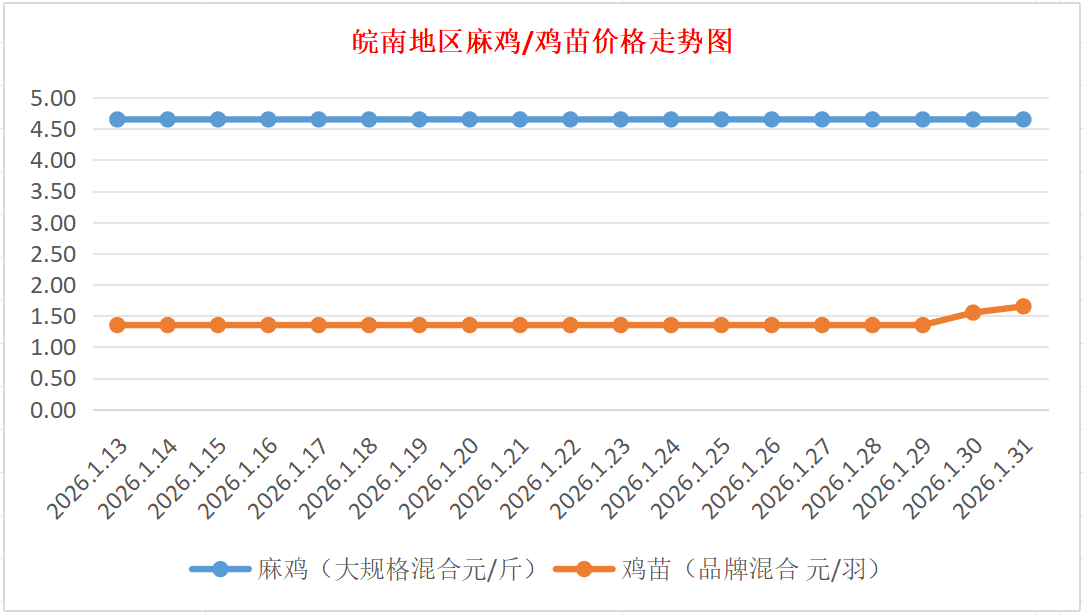 鸡病专业网独家信息:2026年1月31日皖南地区817-麻鸡行情最新走势
