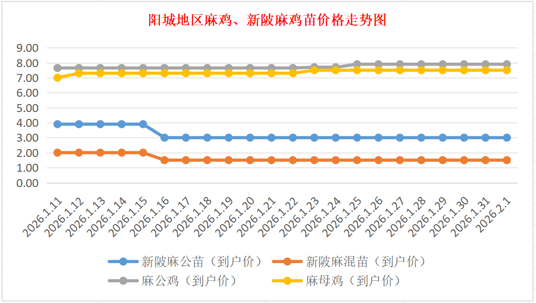 阳城地区麻鸡、新陂麻鸡苗价格走势图(来源:鸡病专业网)