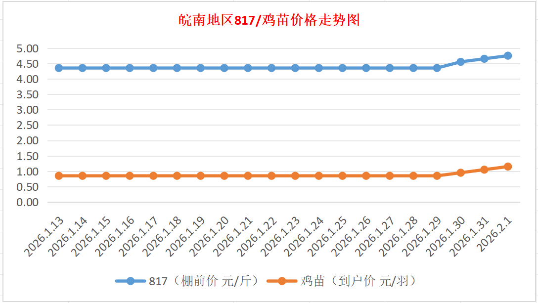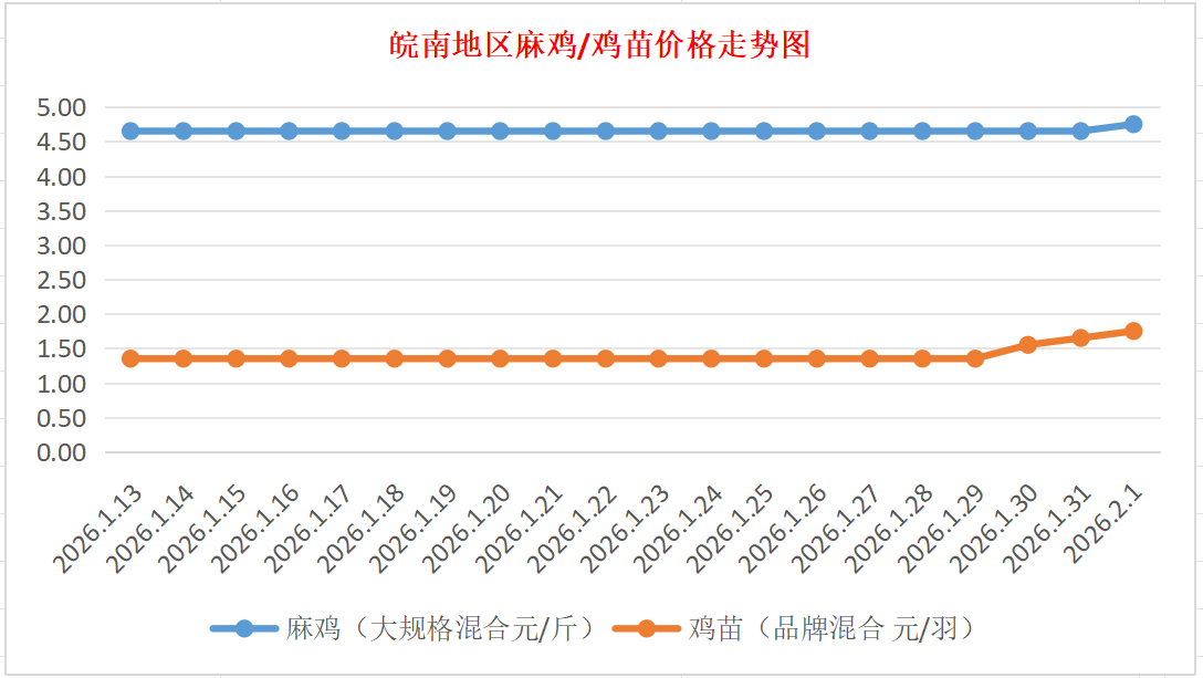 鸡病专业网独家信息:2026年2月1日皖南地区817-麻鸡行情最新走势