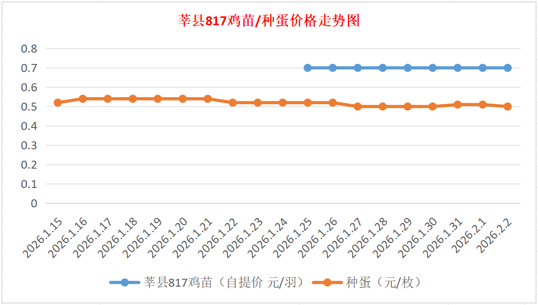 817鸡苗(混合):报价自提0.70元/羽。(稳)