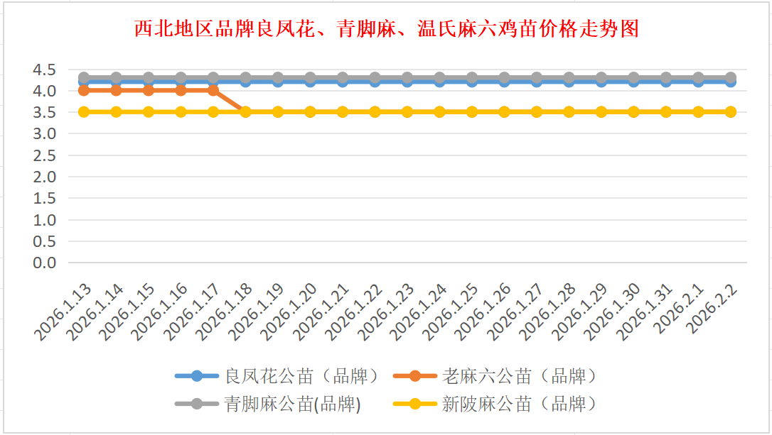 品牌新陂麻:价格稳定,到户价公苗4.50元/羽,稳。
