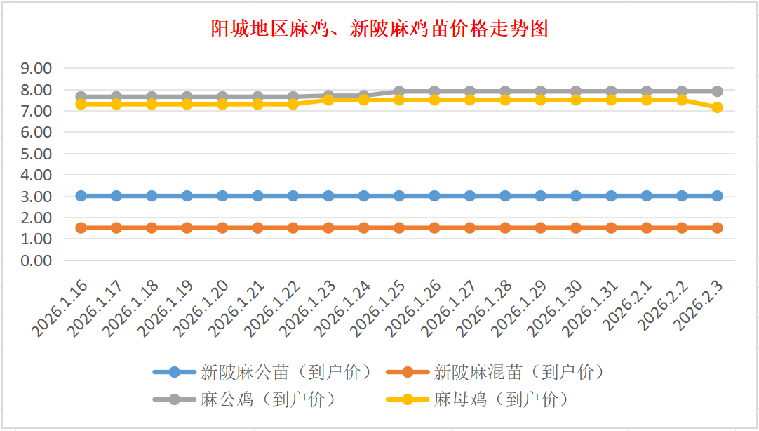 阳城地区麻鸡、新陂麻鸡苗价格走势图(来源:鸡病专业网)
