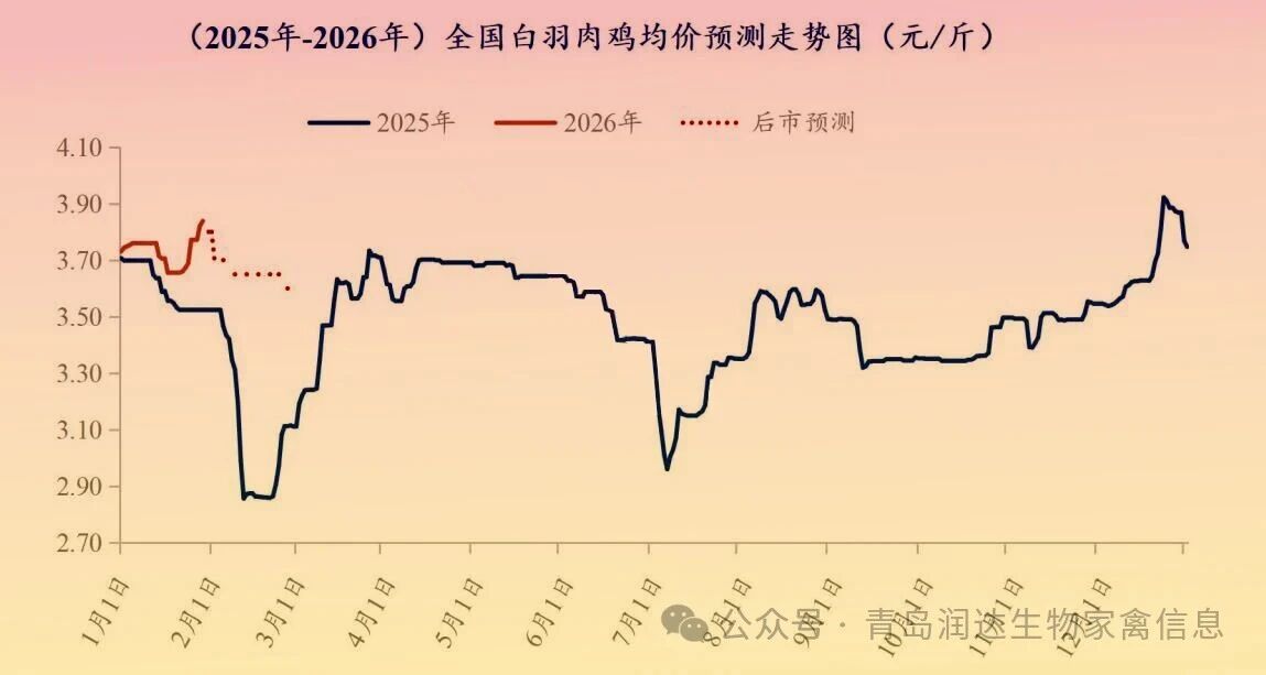 综上考量,2月份毛鸡预计均价高于1月,趋势前高后低,屠企已有下调毛鸡意愿。趋势下滑但跌幅有限,均价仍旧偏高位。