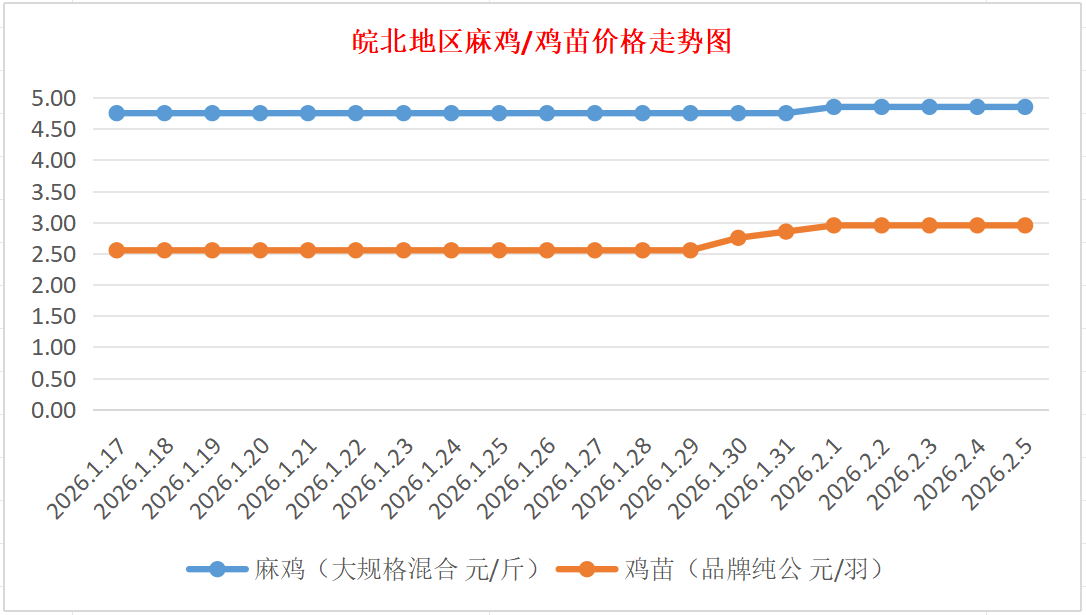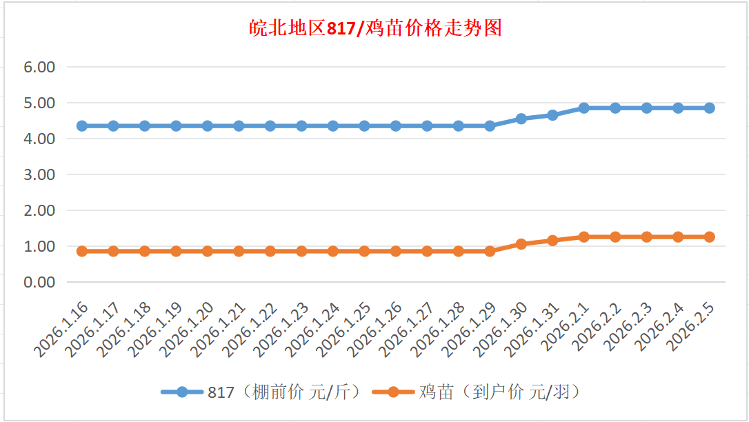 鸡病专业网独家信息:2026年2月5日皖北地区817-麻鸡行情最新走势