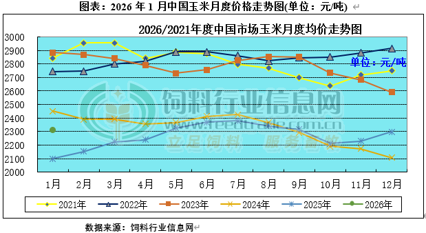 2026年1月国内主产区基层种植户售粮心态略有松动,市场流通粮陆续逐渐增加,中储粮采购力度显著加码,下游企业存在年前备货需求,持续推升现货价格走势,不过中储粮连续投放拍卖粮源,区域粮源得到补充,进口玉米等谷物仍有替代优势,限制现货进一步上涨空间,现货价格维持窄幅偏强调整,全国现货均价月环比上涨0.46%。