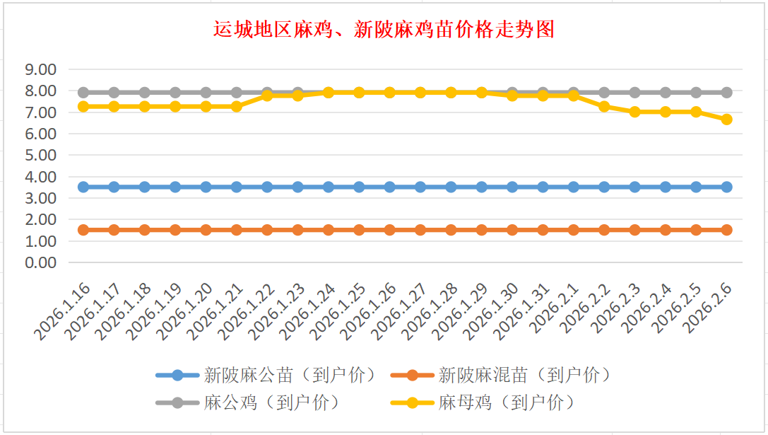 运城地区麻鸡、新陂麻鸡苗价格走势图(来源:鸡病专业网)