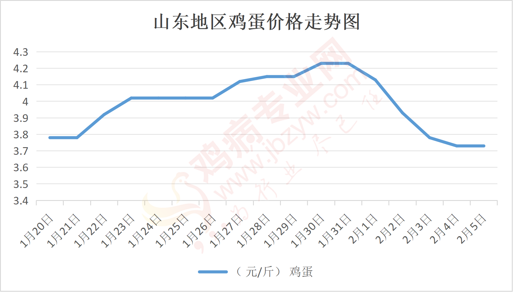 鸡病专业网消息:2月5日,山东地区莱阳鸡蛋3.75元/斤,稳;青岛鸡蛋3.75元/斤,稳;诸城鸡蛋3.8元/斤,稳;安丘鸡蛋3.7元/斤,稳;昌乐鸡蛋3.7元/斤,稳;寿光鸡蛋3.7元/斤,稳;昌邑鸡蛋3.7元/斤,稳;高密鸡蛋3.8元/斤,稳;青州鸡蛋3.7元/斤,稳;临朐鸡蛋3.7元/斤,稳;莱州鸡蛋3.75元/斤,稳;威海鸡蛋3.75元/斤,稳;临沭鸡蛋3.65元/斤,稳;沂水鸡蛋3.65元/斤,稳;沂南鸡蛋3.65元/斤,稳;莒南鸡蛋3.65元/斤,稳;兰陵县鸡蛋3.65元/斤,稳;日照鸡蛋3.65元/斤,稳;莒县鸡蛋3.65元/斤,稳;日照辛萁商贸鸡蛋3.65元/斤,稳;泗水鸡蛋价格108元/30斤,稳;济宁、汶上鸡蛋价格108元/30斤,稳;梁山、东平红蛋价格108元/30斤,稳;枣庄滕州地区鸡蛋混码主流到户110元/30斤,稳;泰安地区新泰鸡蛋价格108元/30斤,稳;菏泽地区曹县主流到户107元/30斤,稳;成武鸡蛋价格107元/30斤,稳;单县到户107元/30斤,稳;聊城莘县107元/30斤,稳;莱芜鸡蛋164元/45斤,稳;济南鸡蛋164元/45斤,稳;德州鸡蛋142元/40斤,稳;滨州鸡蛋142元/40斤,稳。