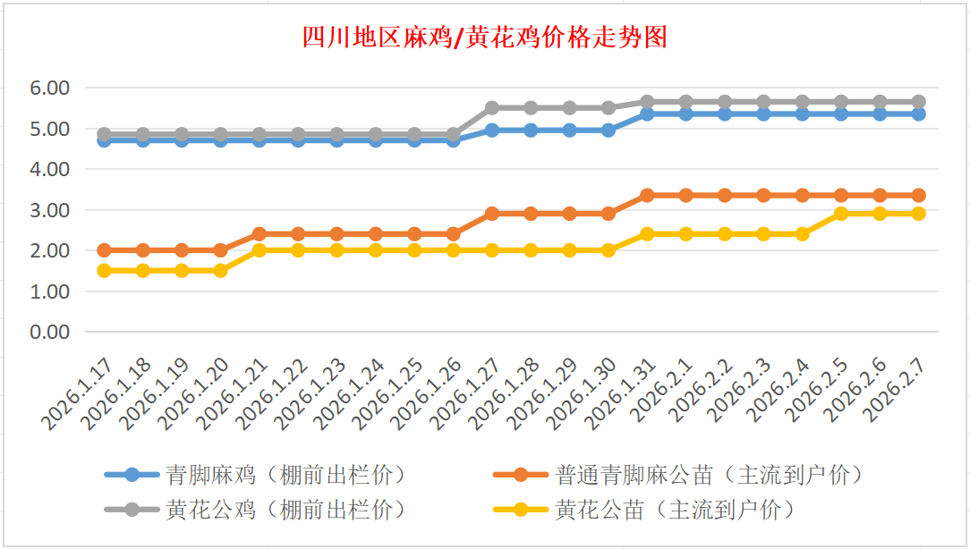 四川地区麻鸡/黄花公价格走势图(来源:鸡病专业网)