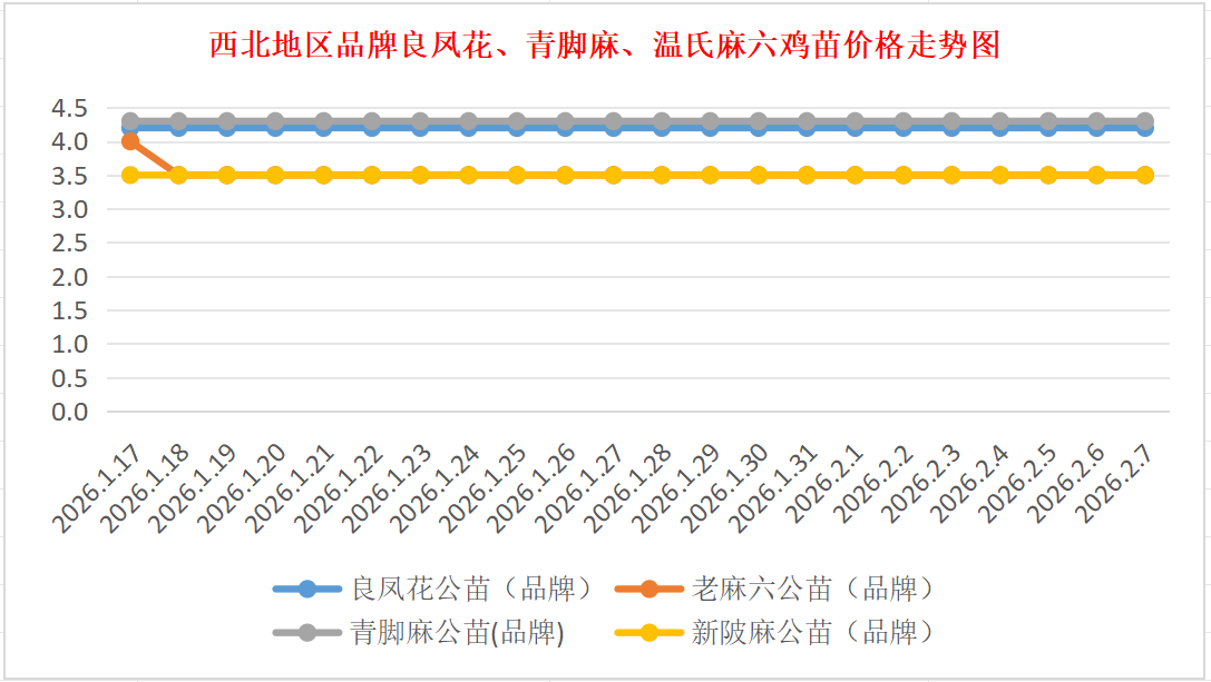 品牌新陂麻:价格稳定,到户价公苗4.50元/羽,稳。