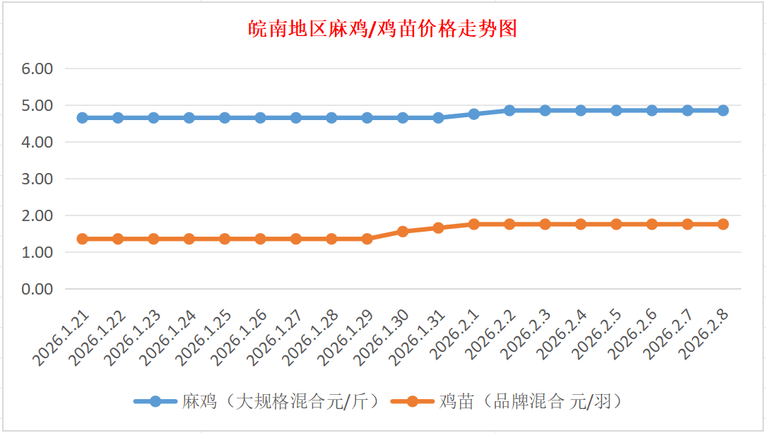鸡病专业网独家信息:2026年2月8日皖南地区817-麻鸡行情最新走势