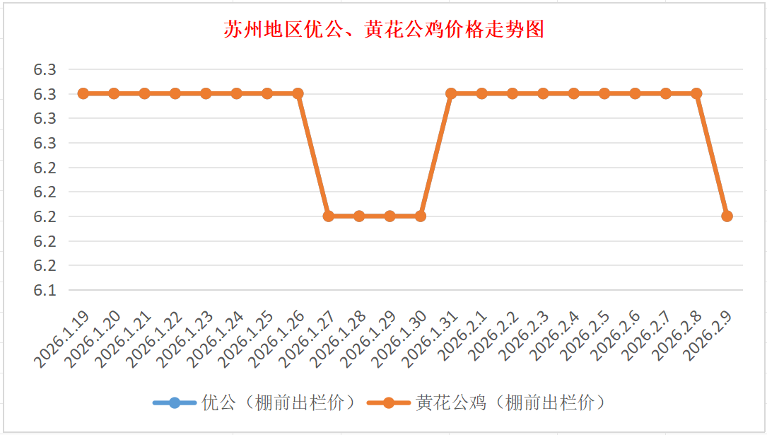 苏州地区优公、黄花公鸡价格走势图(来源:鸡病专业网)