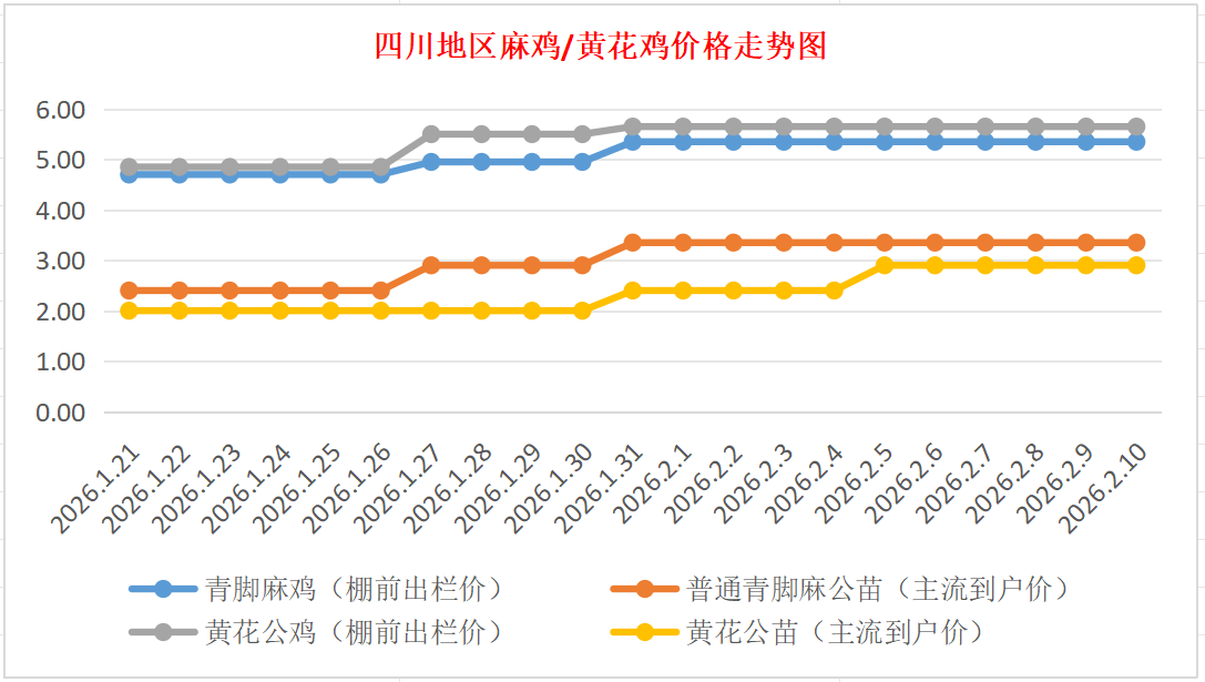 四川地区麻鸡/黄花公价格走势图(来源:鸡病专业网)