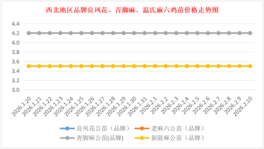 品牌新陂麻:价格稳定,到户价公苗4.50元/羽,稳。