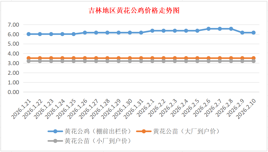 黄花公苗:价格稳定,大厂到户价3.50元/羽,小厂到户价3.20元/羽,稳。