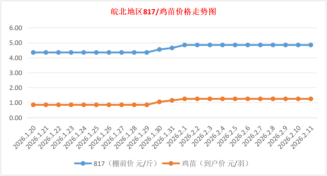 鸡病专业网独家信息:2026年2月11日皖北地区817-麻鸡行情最新走势