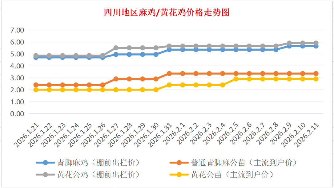 四川地区麻鸡/黄花公价格走势图(来源:鸡病专业网)