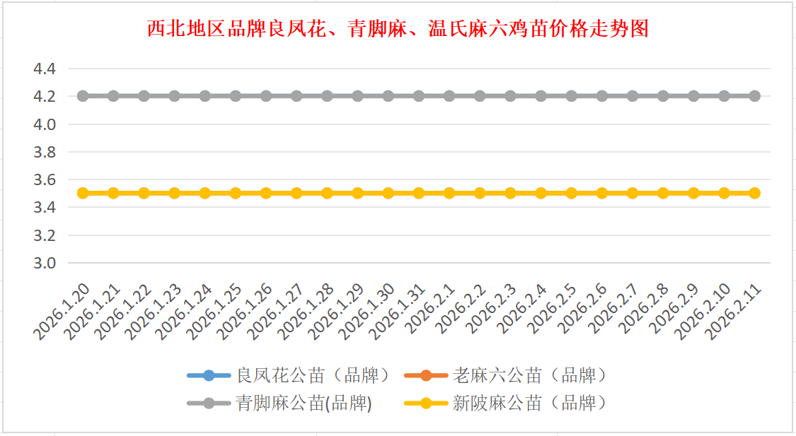 品牌新陂麻:价格稳定,到户价公苗4.50元/羽,稳。