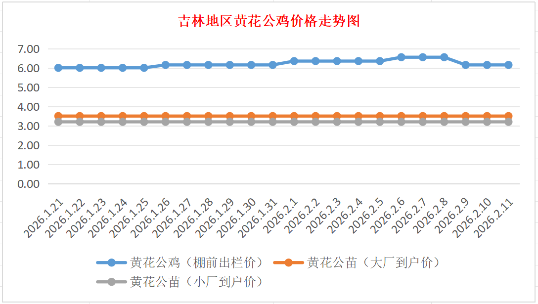 黄花公苗:价格稳定,大厂到户价3.50元/羽,小厂到户价3.20元/羽,稳。