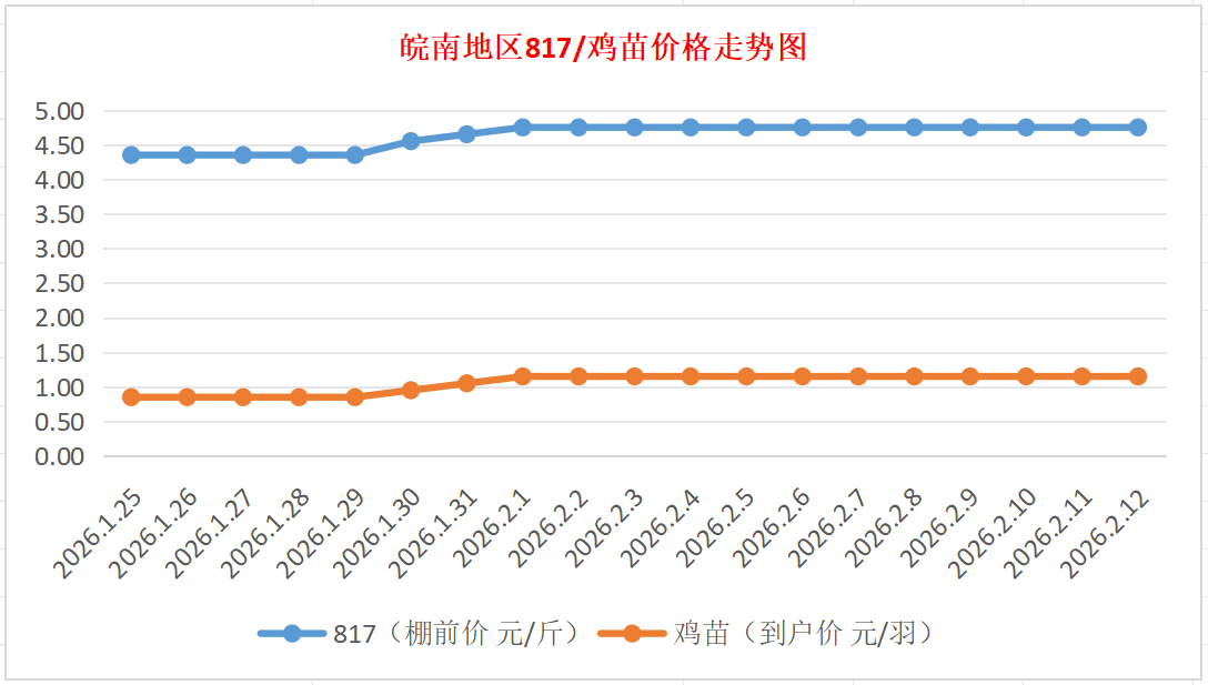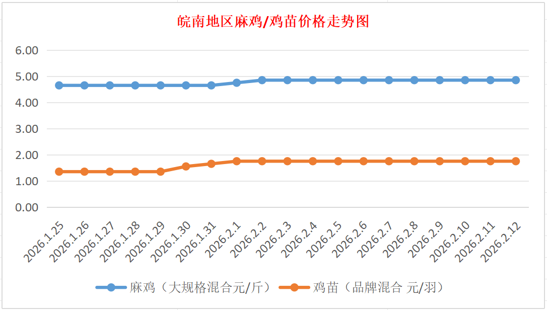 鸡病专业网独家信息:2026年2月12日皖南地区817-麻鸡行情最新走势