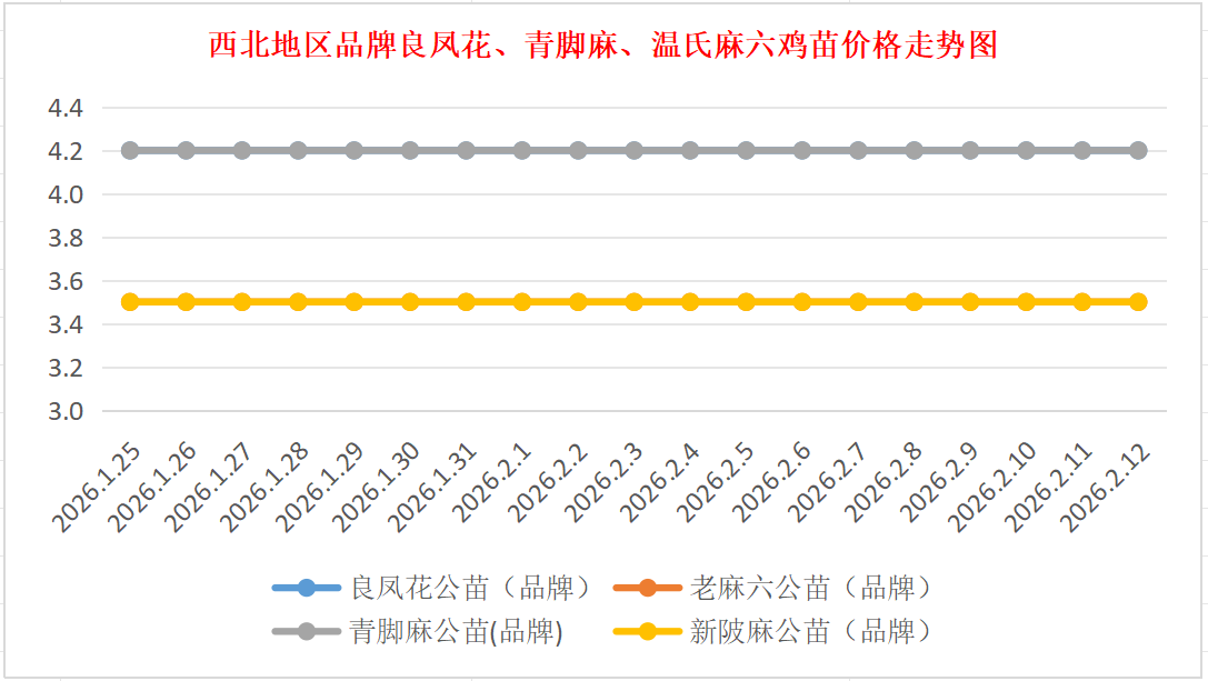 品牌新陂麻:价格稳定,到户价公苗4.50元/羽,稳。