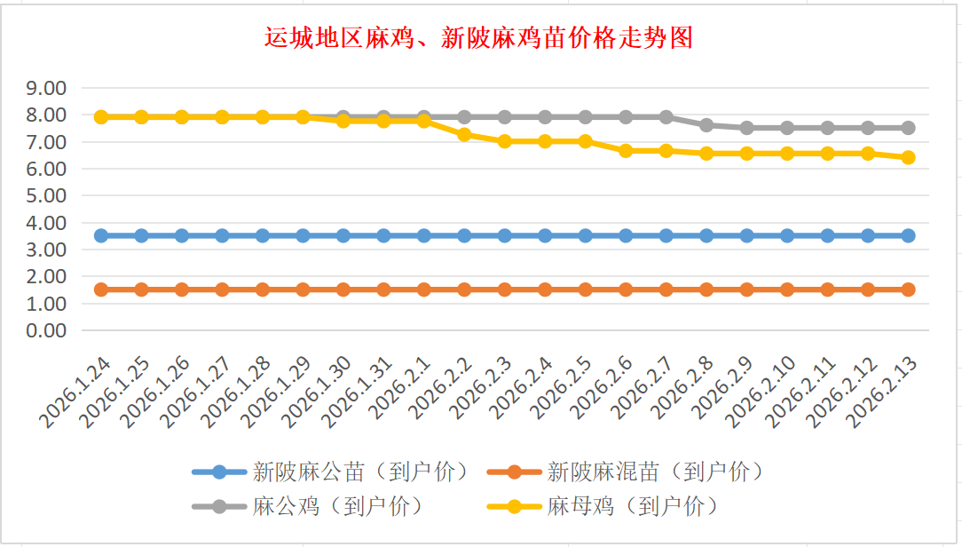运城地区麻鸡、新陂麻鸡苗价格走势图(来源:鸡病专业网)
