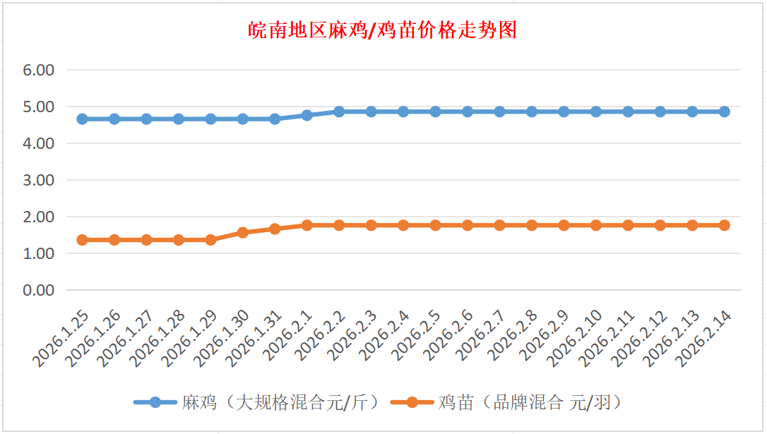 鸡病专业网独家信息:2026年2月14日皖南地区817-麻鸡行情最新走势