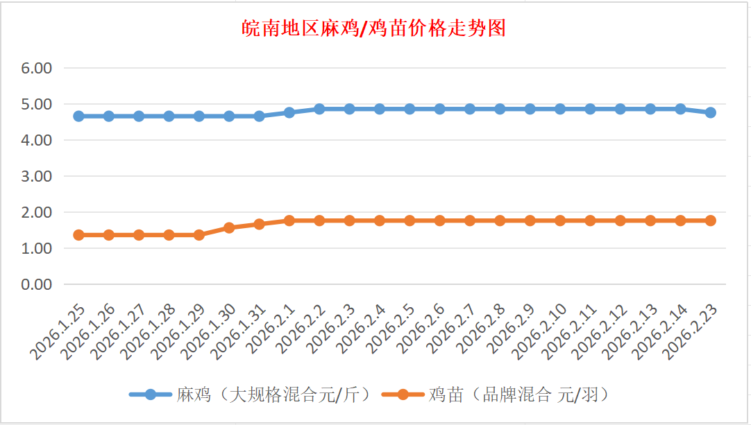 鸡病专业网独家信息:2026年2月23日皖南地区817-麻鸡行情最新走势