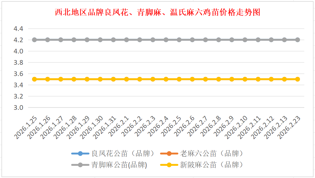 品牌新陂麻:价格稳定,到户价公苗4.50元/羽,稳。