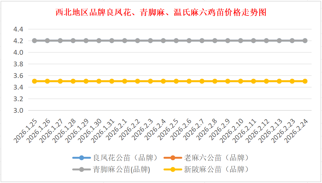 品牌新陂麻:价格稳定,到户价公苗4.50元/羽,稳。