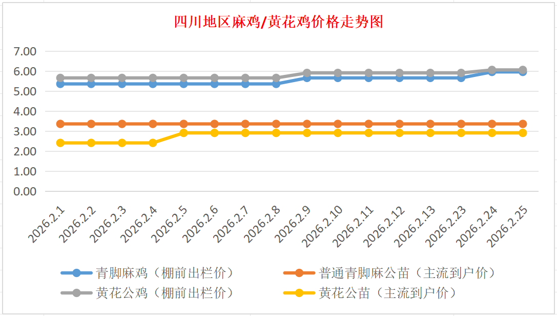 普通青脚麻公苗:价格稳定,主流到户价3.20-3.50元/羽,稳。