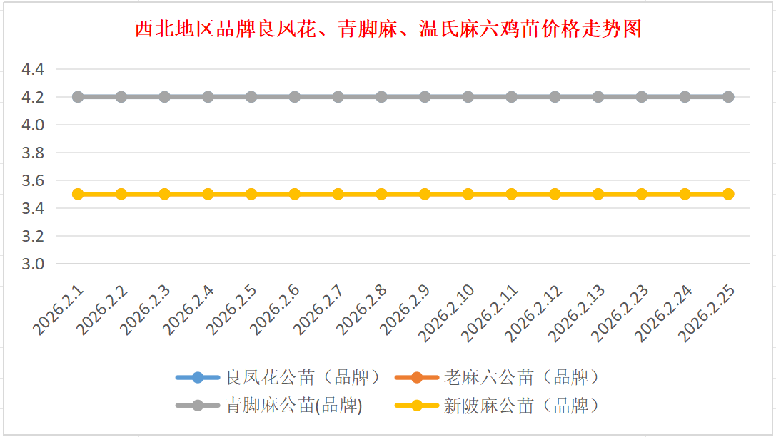 品牌新陂麻:价格稳定,到户价公苗4.50元/羽,稳。