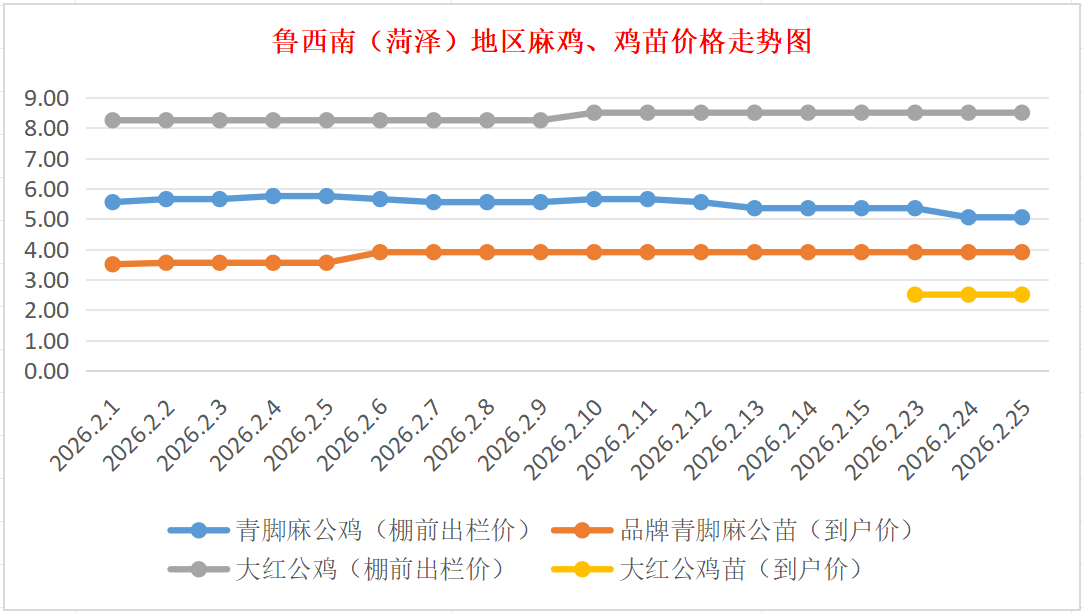 菏泽地区麻鸡、鸡苗价格走势图(来源:鸡病专业网)
