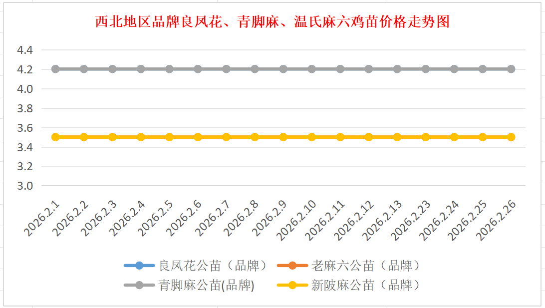 品牌新陂麻:价格稳定,到户价公苗4.50元/羽,稳。