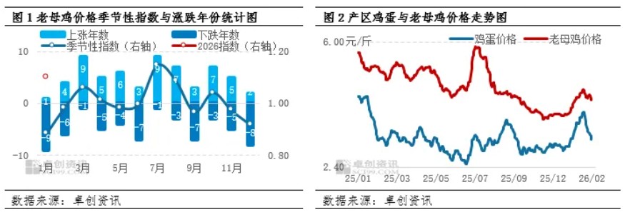 综合来看,2-3月全国老母鸡市场将呈现“供需博弈加剧、价格先跌后稳”的走势,供应端因前期补栏增多,理论待淘量充足,但节后养殖端或先压栏、后正常淘汰,实际出栏节奏存在变数;需求端则处于节后消费淡季,猪肉、肉鸡替代品价格趋弱,屠宰及农贸市场采购意愿普遍不高,预计2月下旬全国老母鸡价格或趋弱下跌;3月份在低位调整后缓慢回升,月均价或在4.15元/斤左右。