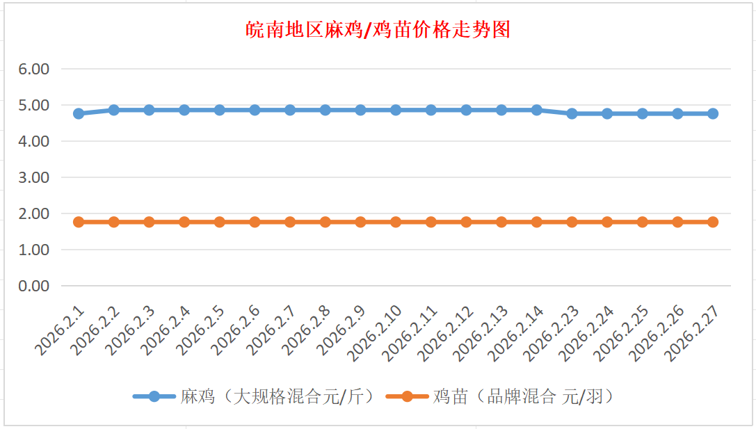 鸡病专业网独家信息:2026年2月27日皖南地区817-麻鸡行情最新走势
