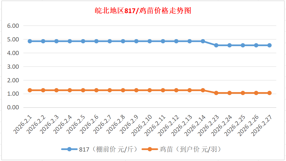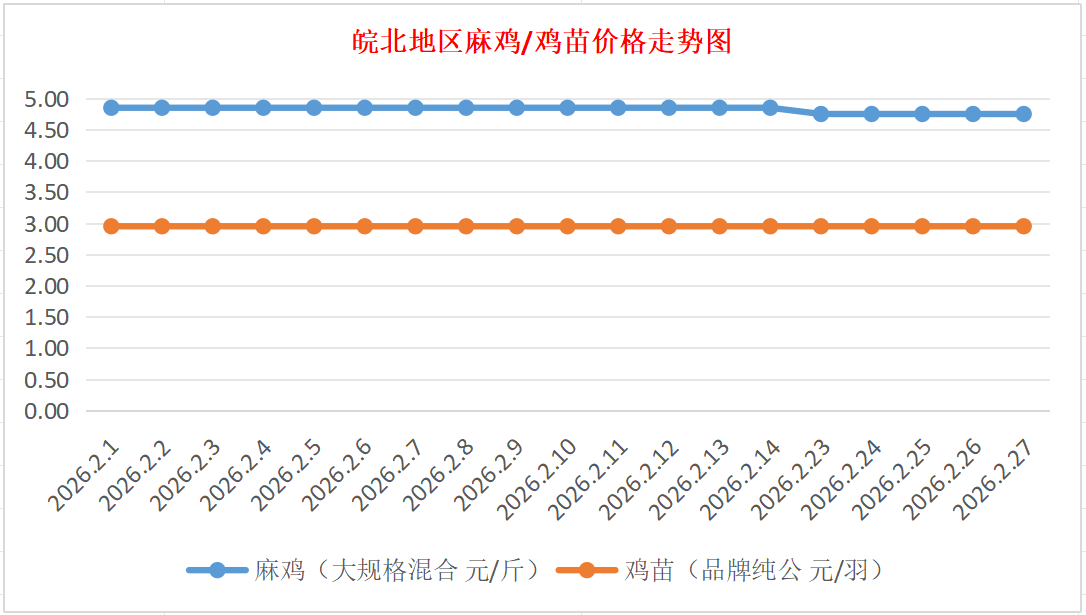 鸡病专业网独家信息:2026年2月27日皖北地区817-麻鸡行情最新走势